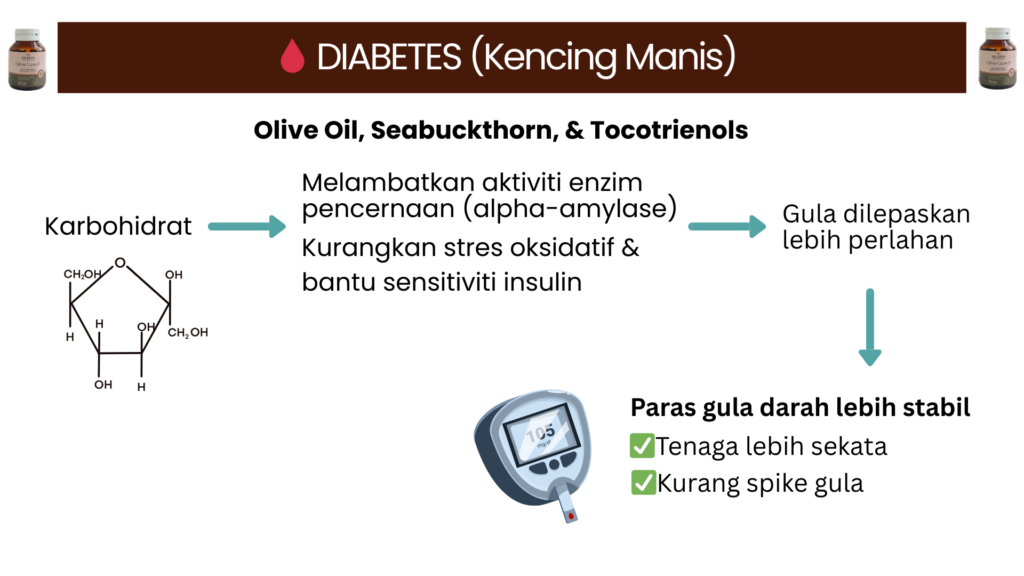 Raudhya OliveGuard+ Diperkaya Bahan Aktif Polyphenols, Tocotrienols (Super Vitamin E) & Omega Aktif Menyokong Kawalan Gula, Kolesterol & Tekanan Darah