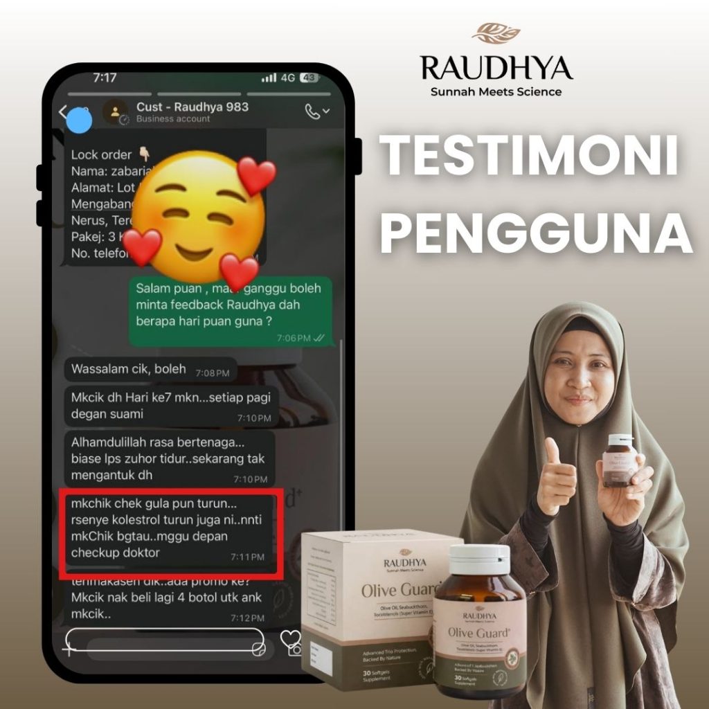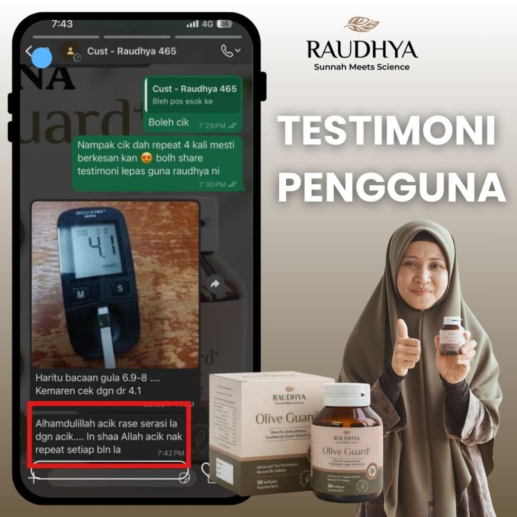 “Sebagai seorang pendakwah dan ibu, saya sangat menitikberatkan apa yang masuk ke dalam badan. Kesihatan satu amanah yang perlu dijaga. Saya pilih Raudhya® kerana ia berasaskan bahan sunnah yang diketahui kebaikannya serta disokong kajian klinikal. Mudah diamalkan, tanpa rasa hanyir, dan sesuai untuk seisi keluarga. Ini antara ikhtiar saya dalam menjaga kesihatan secara semula jadi.”